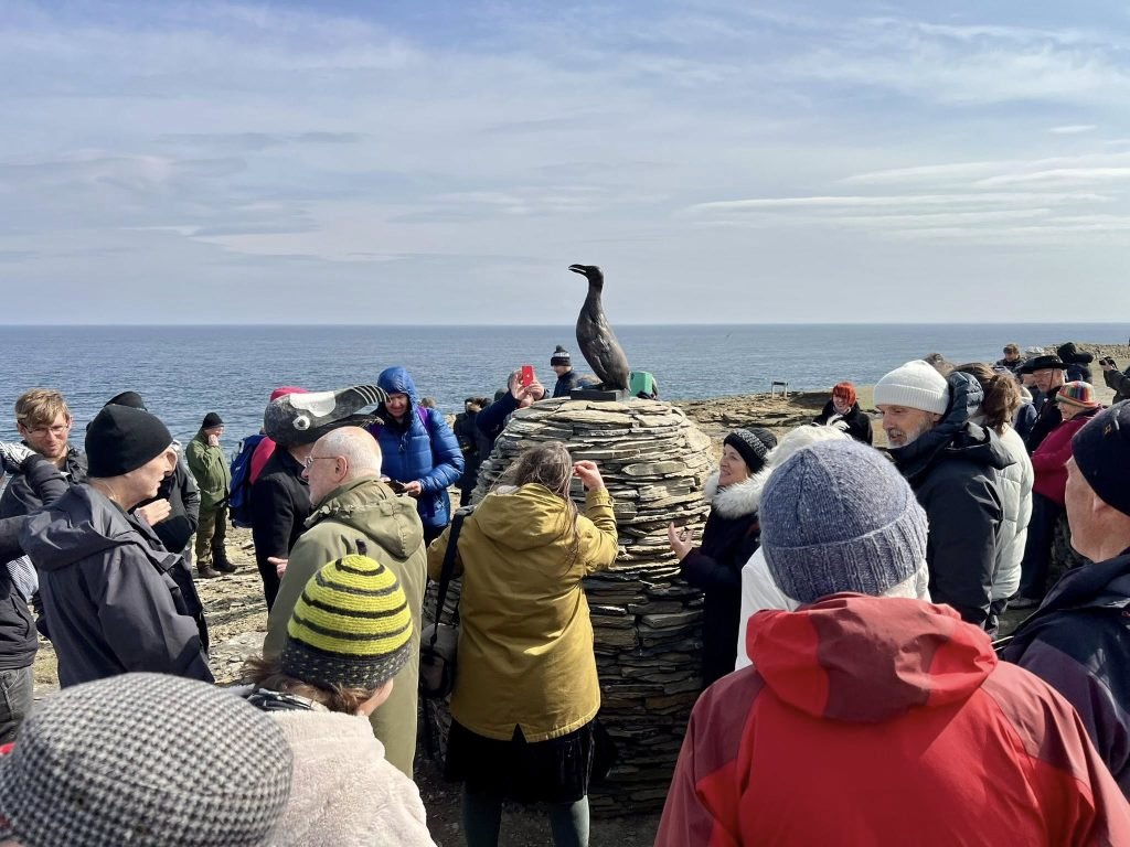 The unveiling drew around 40 locals and visitors, including two participants dressed in black and white with Great Auk headpieces. Among those present was Jonathan Ford, Papa Westray’s ranger, who moved to the island in 2005 after becoming fascinated by the story of the Auk.