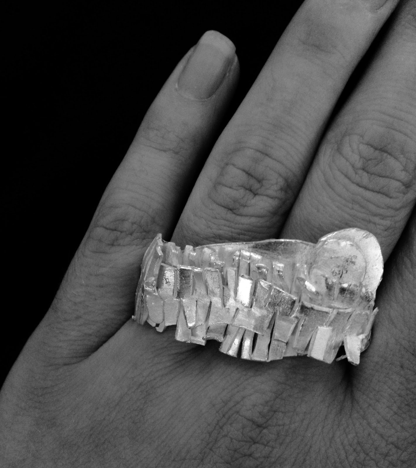 It was a very interesting experience, I was trying a new technique making models from wax and later on casting them into silver. Since I already had sketches from my Thailand-Cambodia trip I was translating my concepts by using a cutter for the wax sheets , thinking about geometry, layering and construction.Â