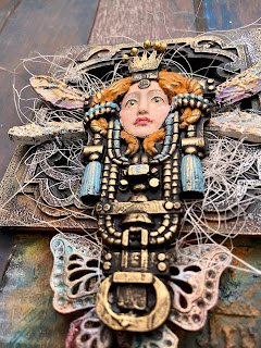 I then decided where to place the various elements and gave it all a good coat of gesso before giving everything a good coat of gesso and then painting and a bit of metallic wax.